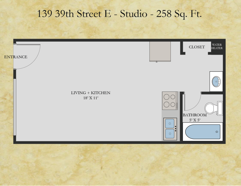 If you are looking for simple and economical housing, then the studios at 139 39th Street East are for you. These units have everything you need without having to deal with roommates.