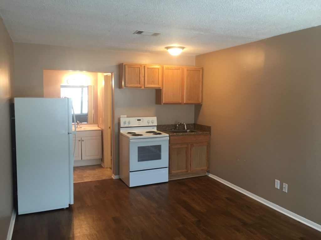 Renovated in 2016, spacious living area, small kitchen area with full size appliances, central heat/ac and vinyl flooring for easy maintenance. This small apartment complex of only 17 units is nestled in a centrally located neighborhood a few miles from everything.